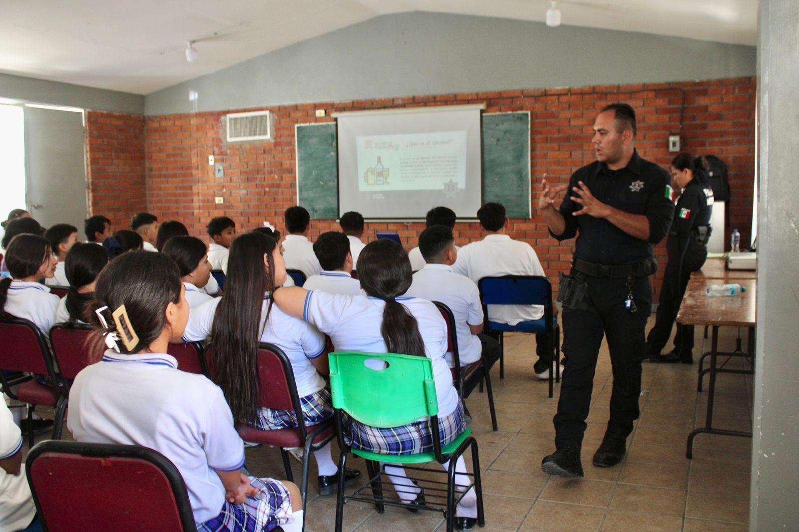 Policía de Torreón lleva mensaje de prevención de adicciones a estudiantes de secundaria de la zona poniente