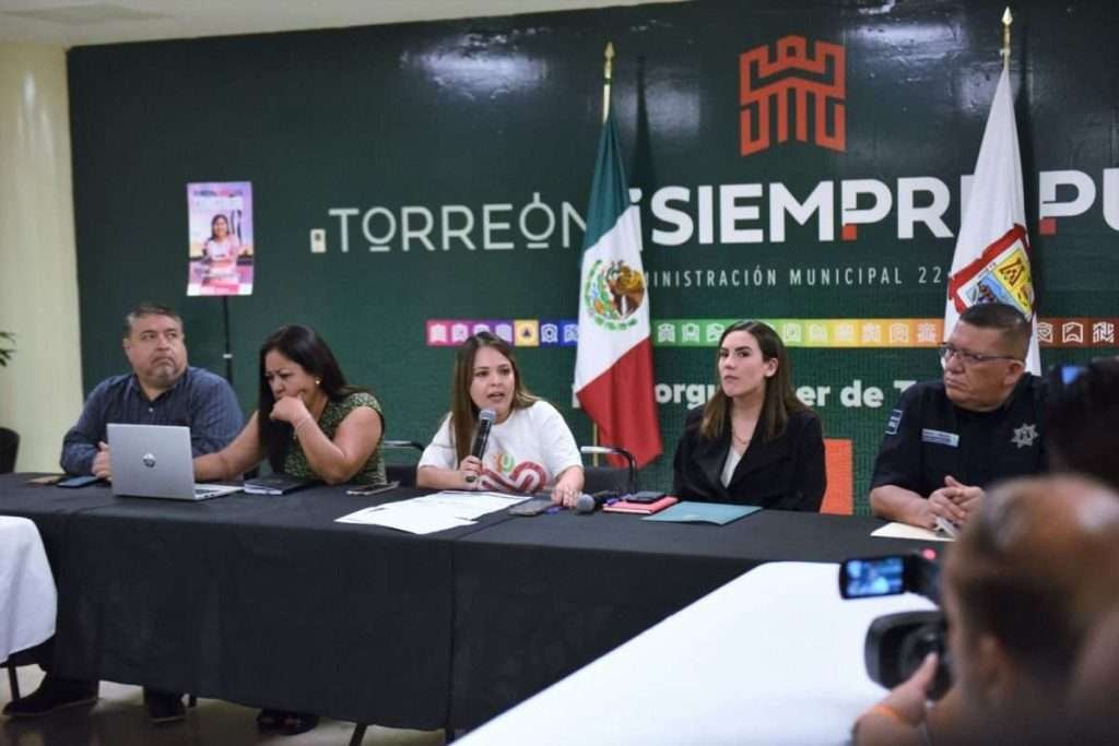 Natalia Guadalupe Fernández Martínez, secretaria del Ayuntamiento de Torreón, comentó que se trata de una estrategia coordinada en la que participan el Instituto Municipal de la Mujer, la Dirección General de Seguridad Pública, la Dirección General de Comunicación Gubernamental y la Secretaría de las Mujeres del Estado.