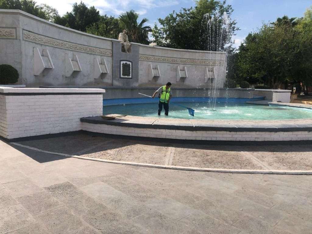 Torreón, Coahuila. A 18 de enero de 2026.- Con el fin de conservar la estética y el buen funcionamiento de los espacios públicos, personal municipal lleva a cabo labores diarias de limpieza y mantenimiento integral en las fuentes emblemáticas de la ciudad.