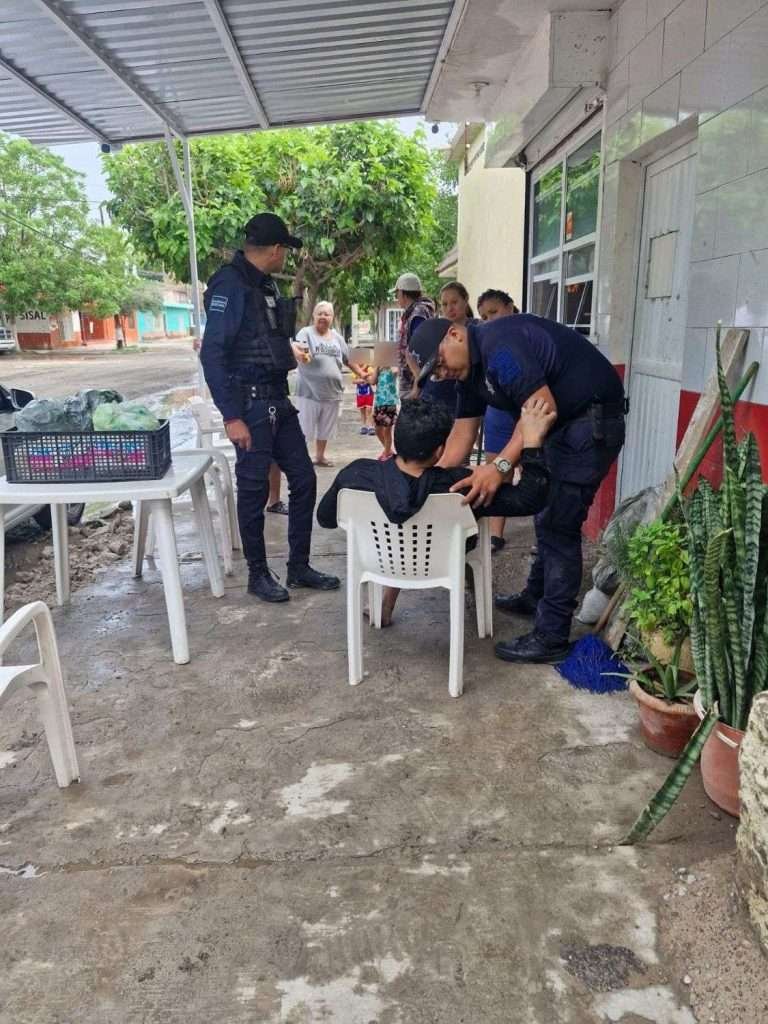 Mientras realizaban su patrullaje preventivo, los elementos observaron a una mujer que solicitaba auxilio con señales de urgencia. Al acercarse la señora de nombre Maleny explicó que su pareja, Miguel Ángel de 26 años de edad, se encontraba realizando trabajos de limpieza en su domicilio, cuando tras ingerir un vaso de agua fría, comenzó a presentar dificultades respiratorias, hasta quedar inconsciente.