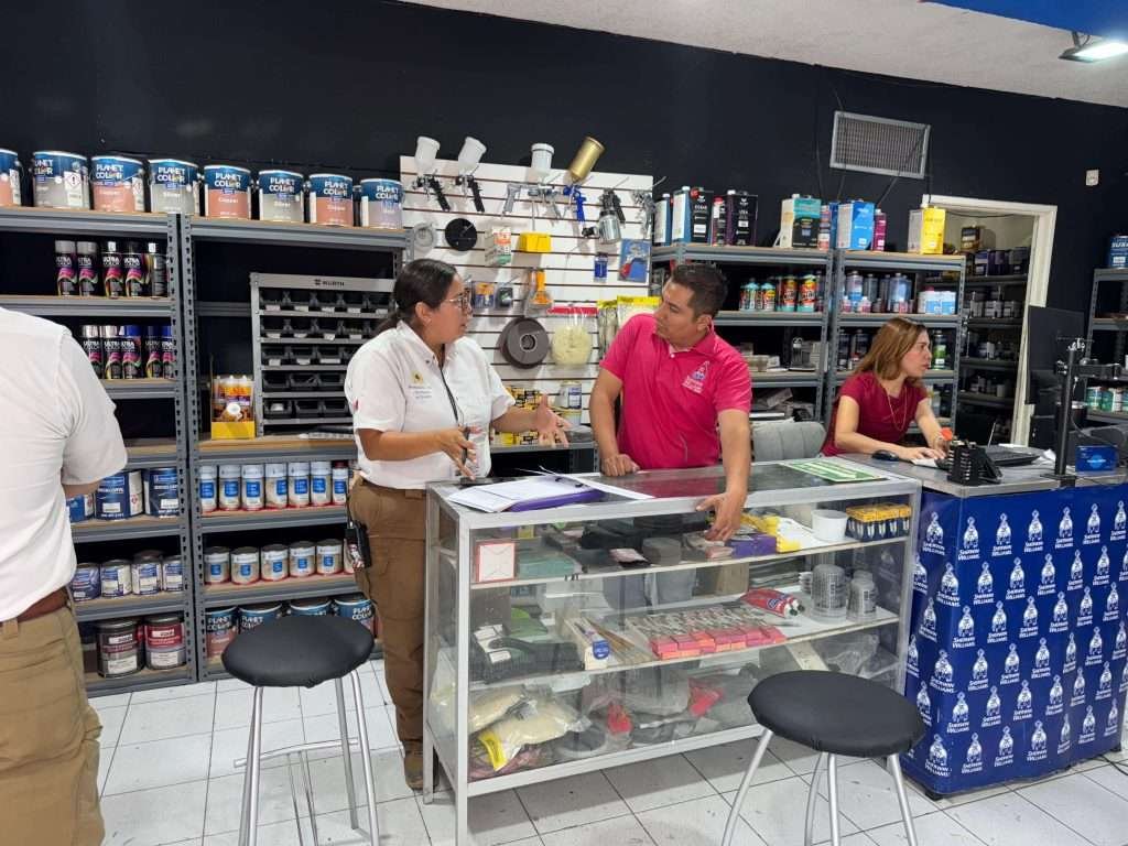 Torreón, Coahuila. A 27 de octubre de 2025.- La Dirección de Protección Civil y Bomberos de Torreón realiza una revisión exhaustiva en diversos locales que manejan pinturas y solventes en la ciudad, con el objetivo de garantizar que cumplan con las normas de seguridad y prevención establecidas.