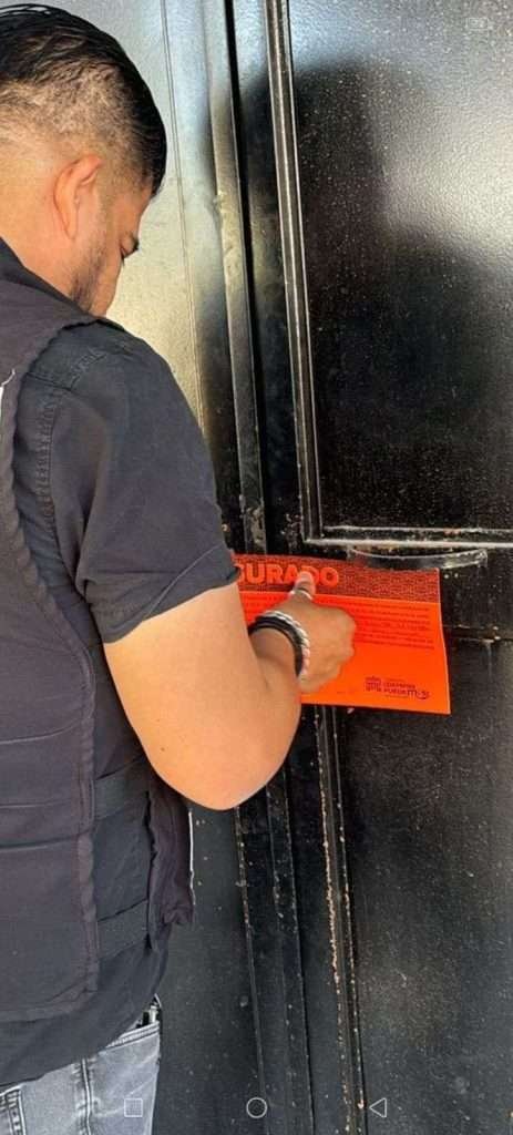 Además, en la colonia Villas La Merced fue clausurado un taller mecánico por no contar con la licencia de funcionamiento, el certificado de fumigación, extintores y el formato DC3 de Protección Civil.
