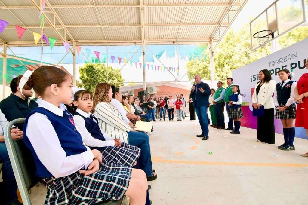 “Era un anhelo de muchos años y pedido desde hace varias Administraciones, nuestra escuela solicitó el apoyo para la reconstrucción de nuestra cancha escolar porque representaba ya un riesgo para nuestros alumnos y hoy gracias a su respuesta oportuna y a su firme compromiso con la educación esa preocupación ha quedado atrás. Nuestra comunidad cuenta ahora con una cancha renovada, un espacio adecuado donde nuestros niños pueden jugar, hacer deportes y fortalecer los valores cívicos. Su administración trabaja con sensibilidad y cercanía a las necesidades reales y con líderes comprometidos como usted la educación seguirá siendo una prioridad en el desarrollo de Torreón”, señaló.