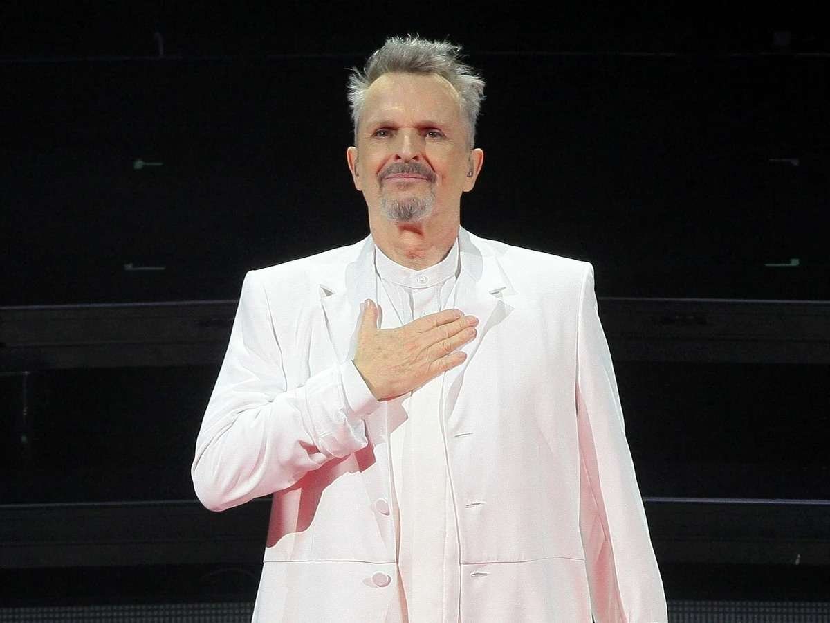 Alrededor de las 10:30 de la noche salió al escenario Miguel Bosé, vestido todo él de blanco, con una ropa holgada sobre la que llevaba un saco muy largo, tipo hindú. Como es obligado, con mucho maquillaje, en fin, que usted ya lo conoce y lo debe de haber visto en muchísimas ocasiones. La misma fisonomía, solo que más viejo. Creo que debe estar por los 70 años.